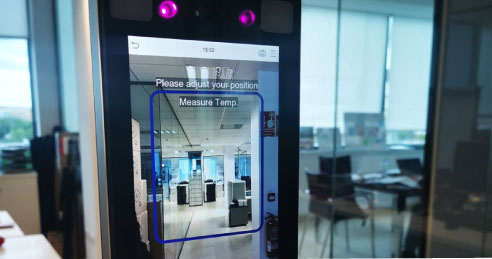 - Acceso facial con detección de temperatura
